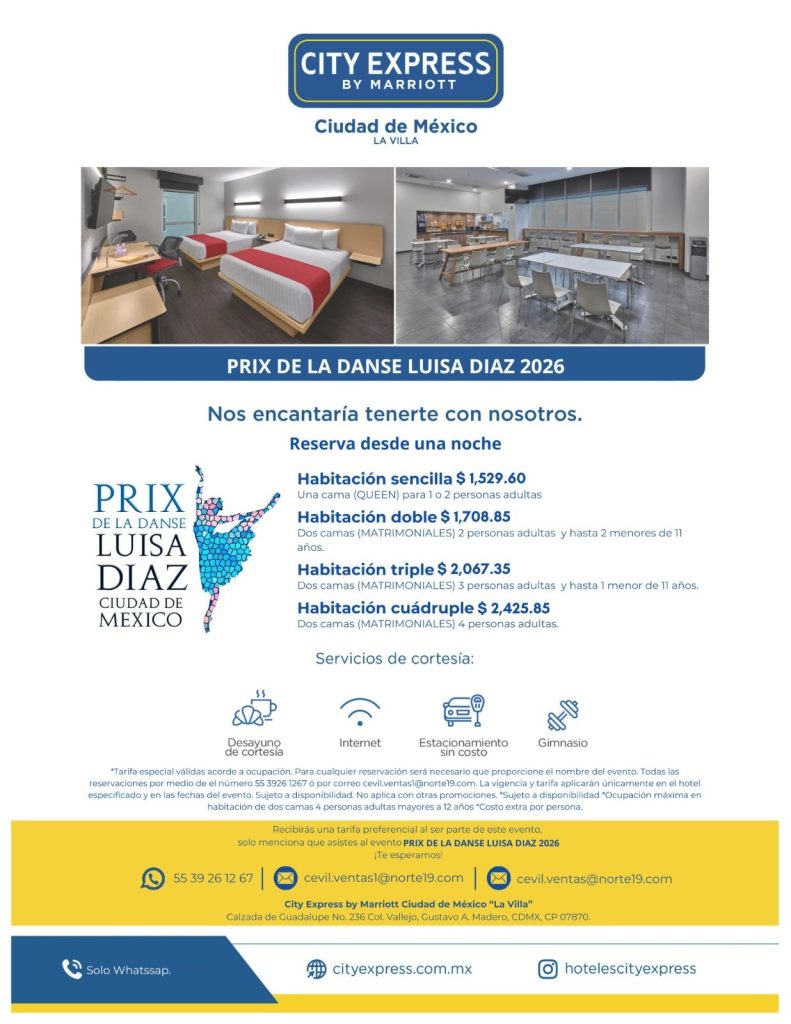 No olviden mencionar la referencia “Prix de la Danse Luisa Díaz 2026” para obtener las tarifas preferenciales.